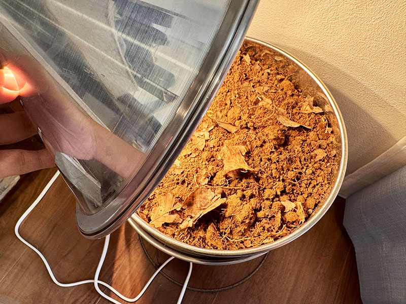 令和7年10月11日現地土壌の「ツルグレン法実験」を実施し、カニムシやミミズ多数!