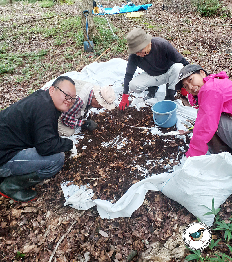 今回実施した土壌動物調査は、朽木 野鳥を守る会の会員4名に指導者を含めた合計5名で実施しました。