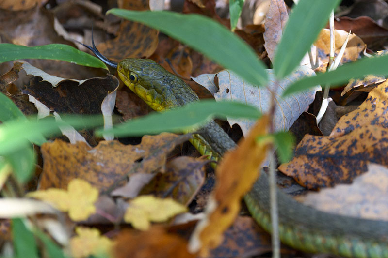 要注意ですが、このヤマカガシ、全く逃げずゆっくり落ち葉の中へ・・・・
