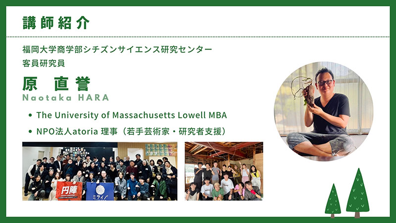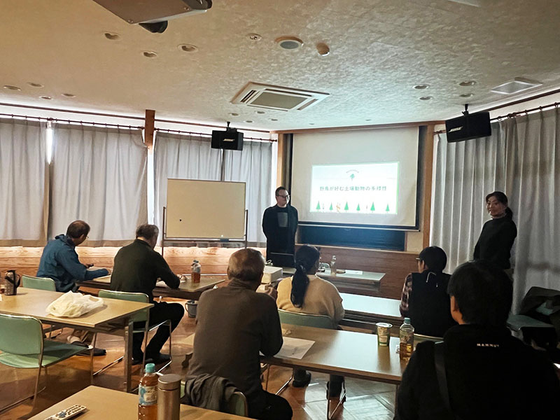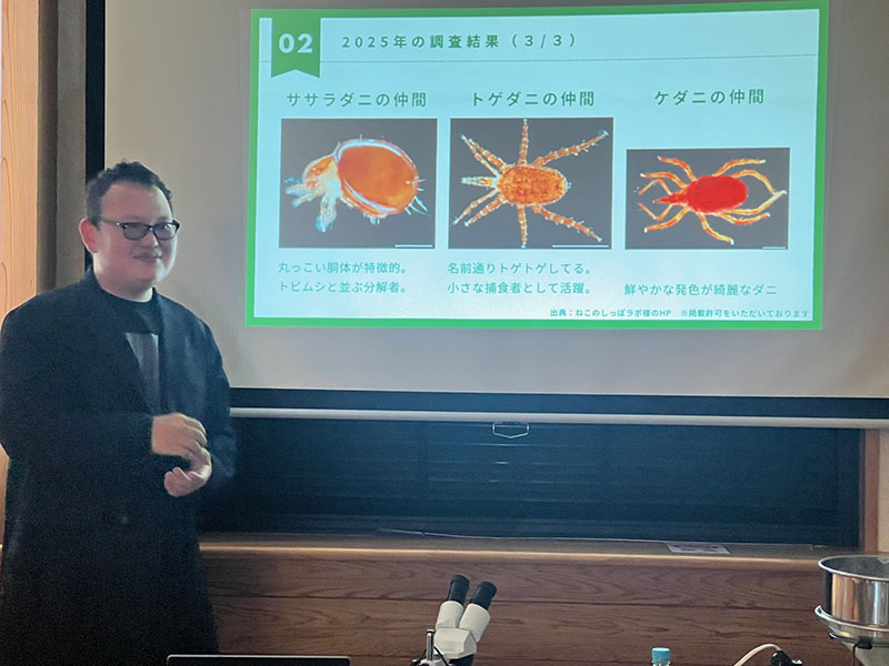 では、令和7年11月22日、福岡大学商学部シチズンサイエンス研究センター客員研究員の原氏にご講演いただきました「野鳥が好む土壌動物の多様性」についてご報告させいただきます。
