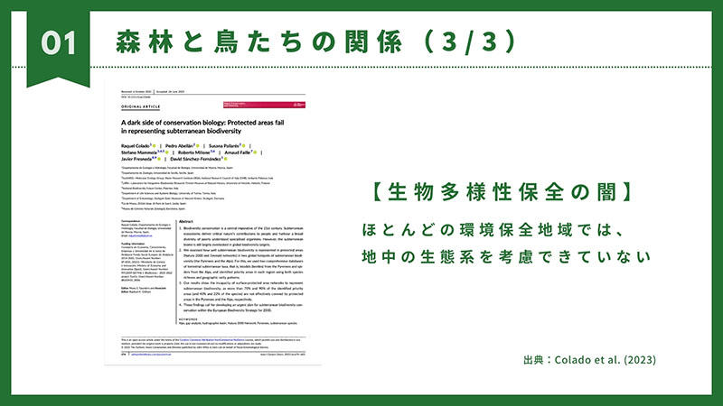 鳥類を保全するために土壌環境を整える取り組みはまだまだ少ないようです。