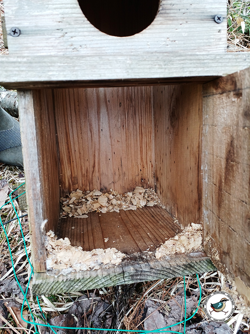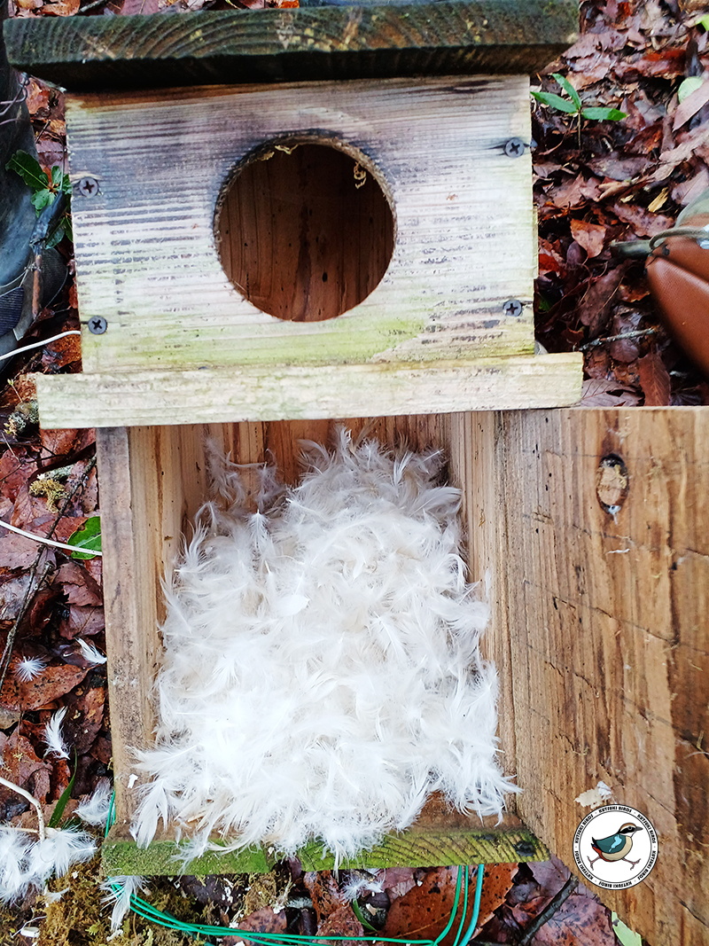 巣箱内を清掃し、たっぷりの羽毛を入れておきましたので、今季も是非ご利用を!
