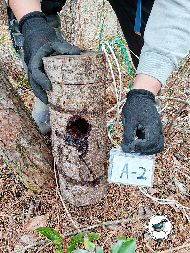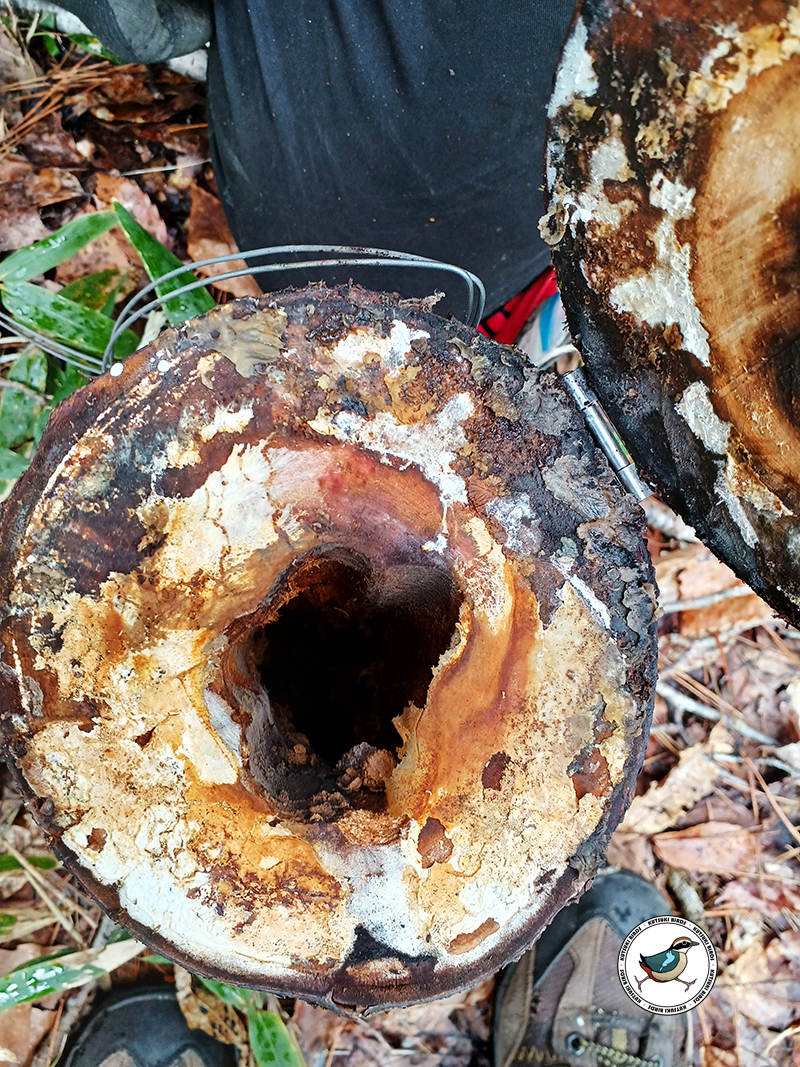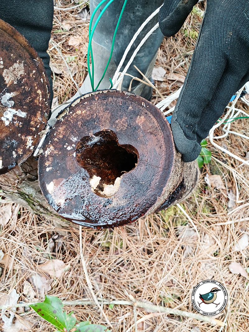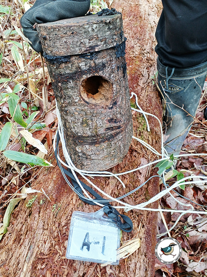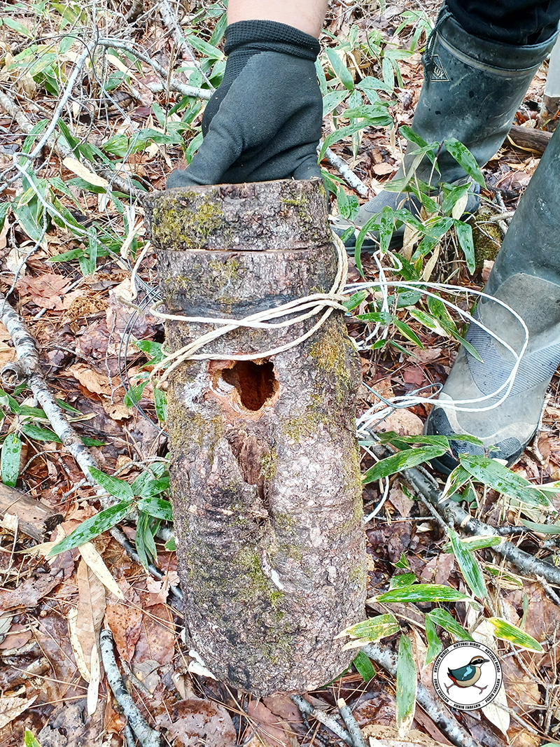 去年設置した際の穴の大きさが断然違います。腐敗しているから、樹皮も柔らかくなっているのかもしれませんが、嬉しい!