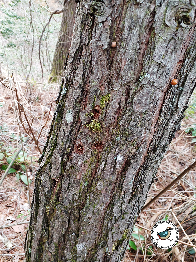 この近くの枯れた松にアカゲラ系が何度も突いた後が3か所ありました!