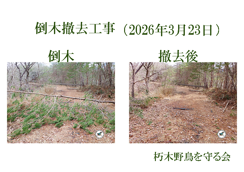 さて、令和8年3月23日現地の巣箱清掃及び点検の際、積雪による倒木等の撤去工事を実施しました事をご報告いたします。