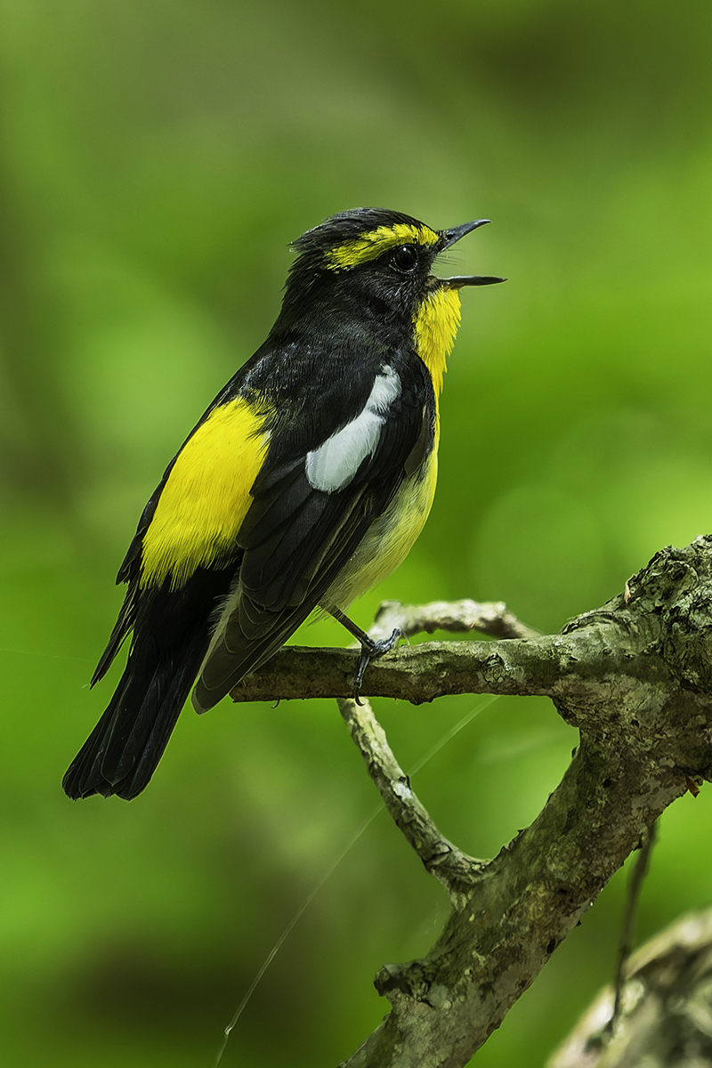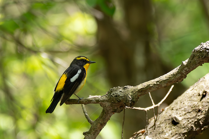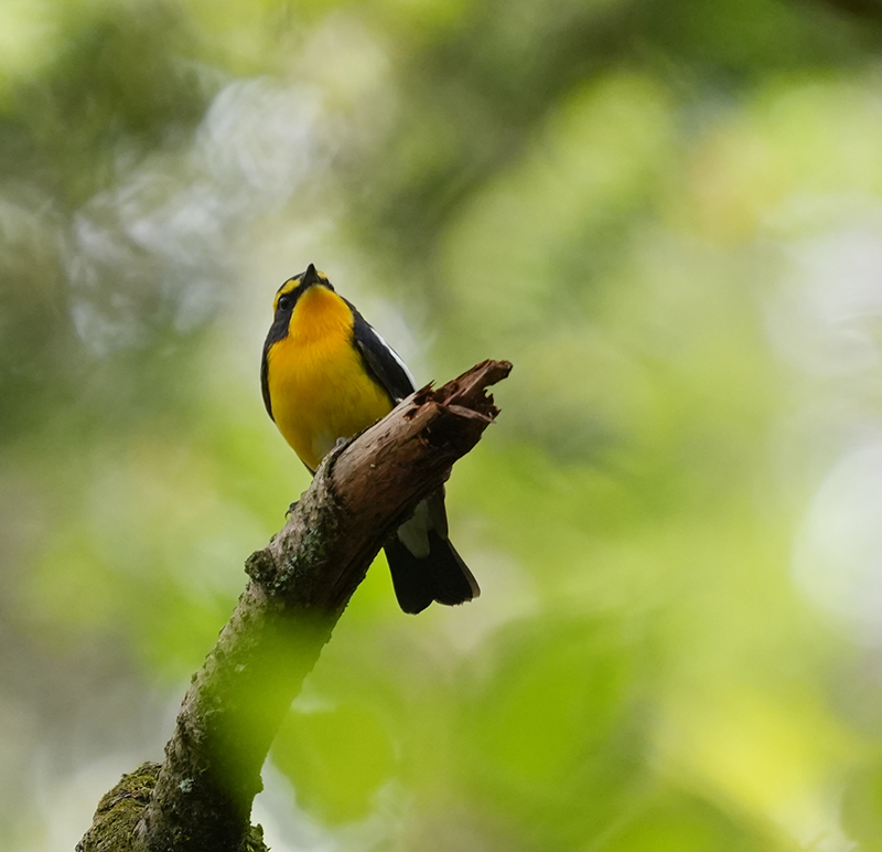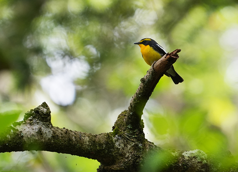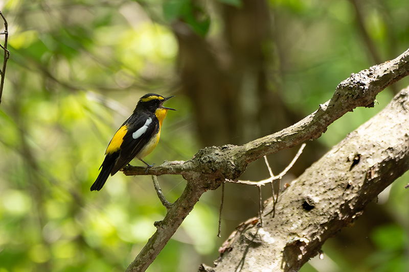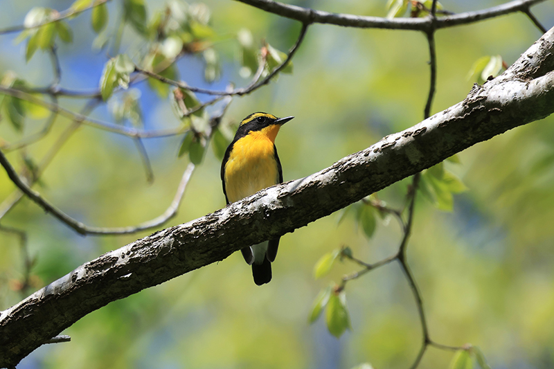 私たちが歩く遊歩道には、20メートル間隔でキビタキが鳴いていて